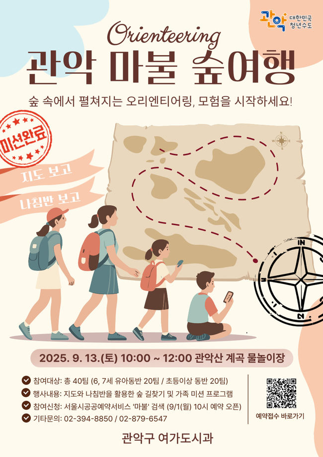 박준희 관악구청장은 “아이들은 자연 속에서 도전과 성취를 경험하고, 부모는 자녀와 함께하는 특별한 시간을 가질 수 있는 것이 이번 프로그램의 가장 큰 의의”라며 “앞으로도 건강한 가족 여가문화 확산과 환경 보전 의식 제고를 위해 다양한 숲 체험 프로그램을 확대해 나가겠다”고 밝혔다.