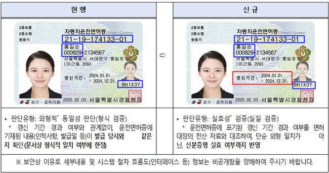 현재까지는 갱신 여부와 관계없이 면허증 기재 사항만 발급 당시 정보와 같으면 ‘일치’로 표시돼 사실상 신분증으로 사용 가능했다.