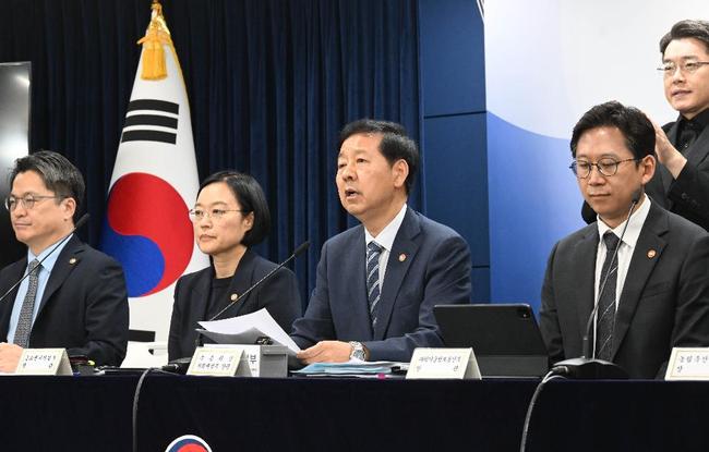 구윤철 부총리 겸 기획재정부 장관이 8월 22일 오후 서울 종로구 정부서울청사에서 열린 '새정부 경제성장전략 관계부처 합동브리핑'에 참석, 발표문을 낭독하고 있다. 사진 왼쪽부터 문신학 산업부 1차관, 한성숙 중기부 장관, 구윤철 부총리, 배경훈 과기부 장관