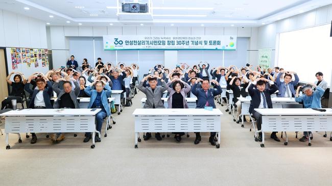 안성3동행정복지센터로 자리를 옮긴 김 시장은 안성천살리기 시민모임 창립 30주년 기념식에 참석해 환경 보전에 앞장선 단체의 노고를 격려하며 감사를 전했다.