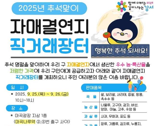 서울 강서구, '추석맞이 자매결연지 직거래장터' 25일부터 이틀간 운영
