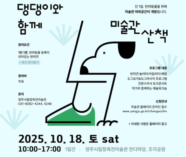 양주시립장욱진미술관이 오는 10월 18일 반려견과 함께하는 특별 프로그램 ‘댕댕이와 함께 미술관 산책’을 개최한다.