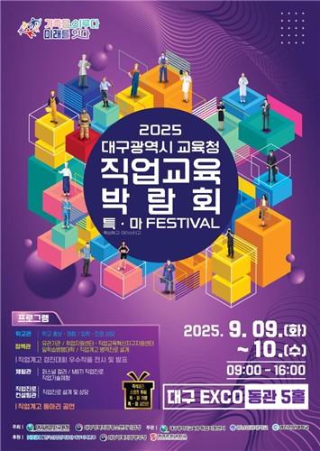 대구시교육청은 9월 9일(화)부터 9월 10일(수)까지 2일간 대구 엑스코 동관 5홀에서 2025. 대구광역시교육청 직업교육박람회 '특·마 Festival' 행사를 개최한다.