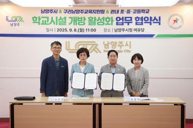 남양주시(시장 주광덕)는 8일 시청 여유당에서 경기도구리남양주교육지원청 및 관내 초·중·고등학교와 함께 '학교시설 개방 활성화를 위한 업무협약'을 체결했다.