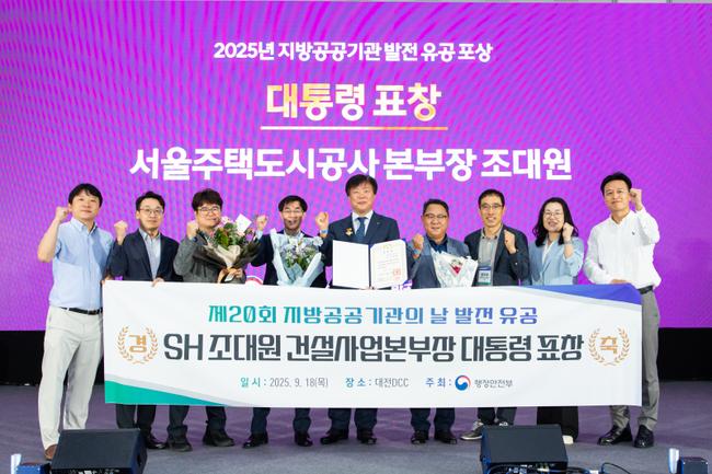 서울주택도시개발공사(SH, 사장 황상하)는 18일 행정안전부가 개최한 '제20회 지방공공기관의 날' 기념식에서 조대원 건설사업본부장이 건설 산업 혁신 및 국가 주요 정책 실현에 기여한 공로를 인정받아 '지방공공기관 발전 유공 대통령 표창'을 수상했다고 밝혔다.
