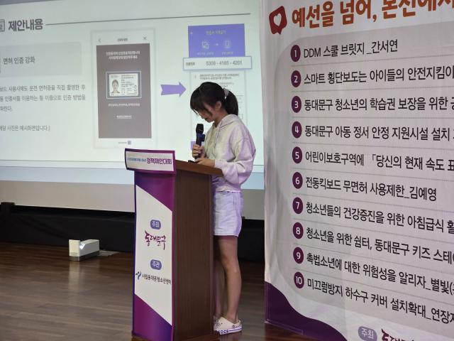 행사에 참석한 동대문구의회 최영숙 운영위원장은 “청소년들이 안전과 복지 등 평소 구의회가 고민하던 주제를 깊이 있게 제안해줘 감사하며, 실현을 위해 구의원들과 함께 노력하겠다”고 말했다.