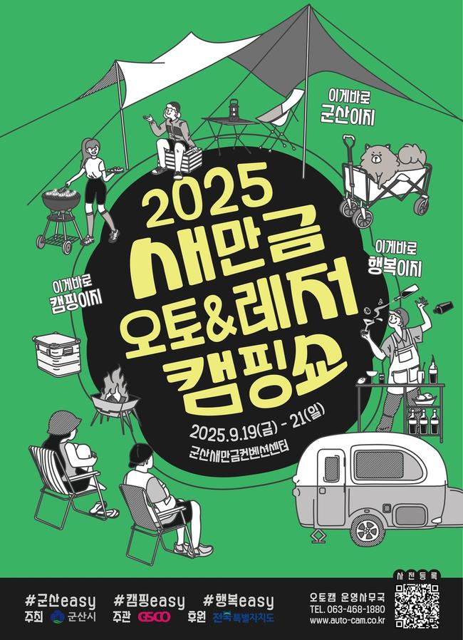 군산시가 주최하고 지스코(GSCO)가 주관하며, 전북특별자치도가 후원하는 서해안권 대표 캠핑·레저 박람회 '2025 새만금 오토레저캠핑쇼'가 19일부터 21일까지 3일간 군산새만금컨벤션센터(이하 '지스코(GSCO)')에서 열린다.