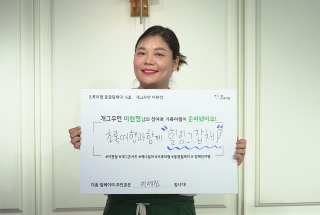 개그우먼 이현정이 장애인 여행 활성화를 위한 초록여행 응원릴레이 6호로 참여했다