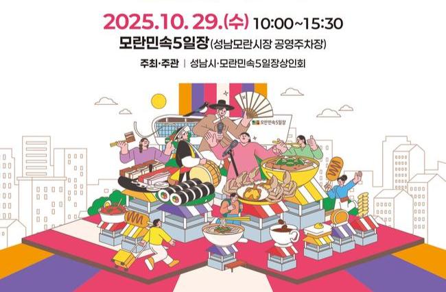 성남시(시장 신상진)는 오는 10월 29일 오전 10시부터 오후 3시 30분까지 모란민속5일장(중원구 둔촌대로 68)에서 '2025 모두모여모란' 축제를 연다.