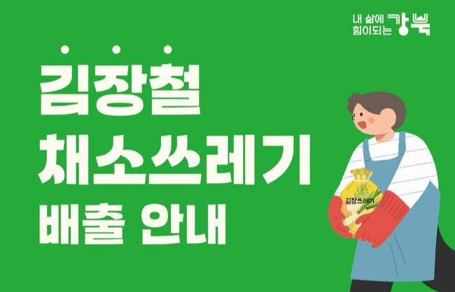 서울 강북구(구청장 이순희)는 김장철을 맞아 11월 2일부터 12월 31일까지 '김장철 채소쓰레기'의 일반 종량제봉투 배출을 한시적으로 허용한다.