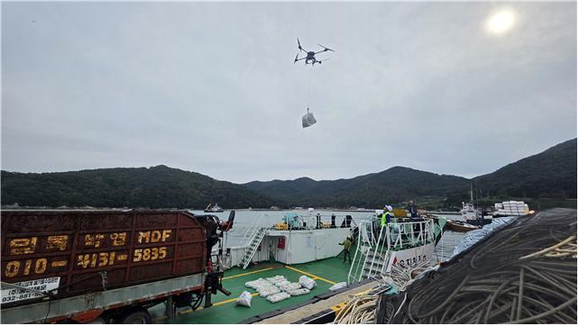 드론 운반을 통해 300㎏ 규모의 해양쓰레기를 안전하게 선박으로 옮겨 해안 쓰레기 수거 효율을 높이고 해상작업의 안전성을 강화할 수 있을 것으로 기대된다.