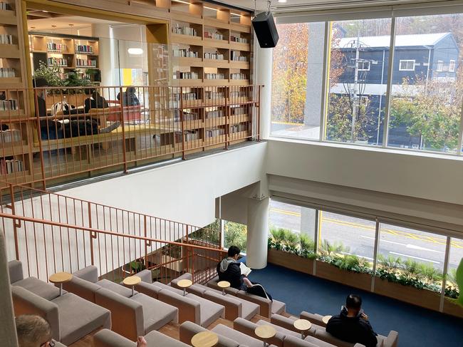 1층 그림책마루부터 옥상 달빛정원까지 전 세대를 위한 독서·휴식·공연 공간을 갖추고 자연 채광과 영축산 경관을 동시에 누릴 수 있도록 설계했다.