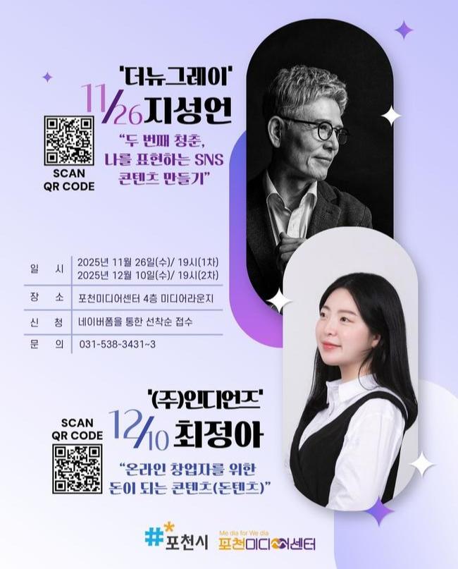 포천미디어센터는 오는 11월 26일과 12월 10일 미디어센터 미디어 라운지에서 시민을 대상으로 '2025 겨울 미디어특강'을 운영한다.