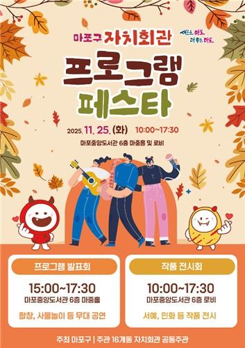 마포구(구청장 박강수)는 11월 25일, 마포중앙도서관에서 '자치회관 프로그램 페스타'를 개최한다.