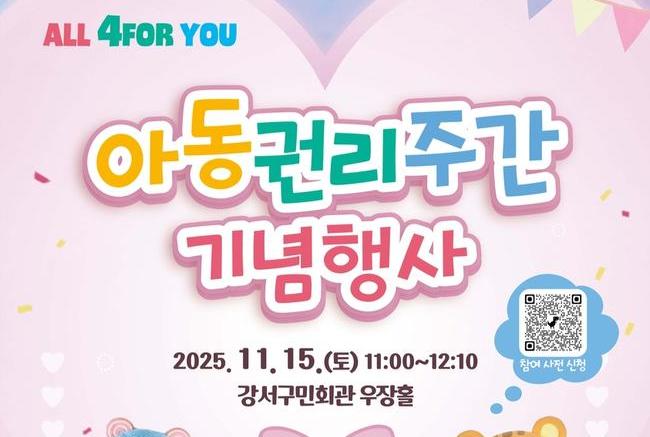 서울 강서구(구청장 진교훈)가 오는 15일(토)부터 21일(금)까지 일주일간 '2025년 아동권리주간'을 운영한다.