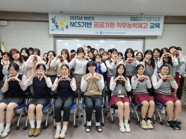 광주시교육청(교육감 이정선)은 지난 10월 28일부터 11월 7일까지 취업 지원센터에서 공공기관 취업을 희망하는 직업계고 학생을 대상으로 '2025년 하반기 NCS 기반 공공기관 맞춤형 직무능력제고 교육'을 운영했다.