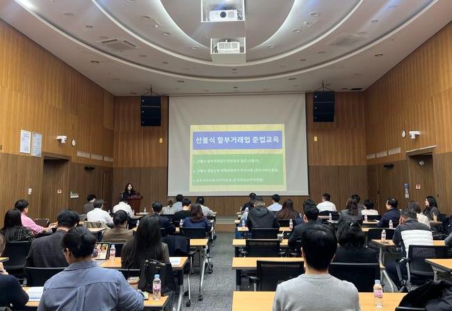 이와 함께 지난 7일 공정거래위원회 및 한국여성소비자연합과 공동으로 관내 선불식 할부거래업체 37개사를 대상으로 준법교육을 진행했다. 이번 교육에서는 결합상품 관련 주요 위반사례와 법규 준수사항을 중심으로 소비자 피해 예방 방안이 안내됐다.
