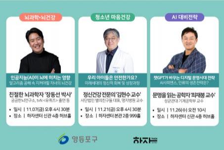 이번 특강은 청소년, 교사, 학부모 등 관심 있는 구민 누구나 참여할 수 있으며, 회차별 선착순 200명을 모집한다. 신청은 각 강연 전날 오후 6시까지 가능하며, 홍보 포스터 속 큐알(QR) 코드를 통해 접수할 수 있다. 자세한 사항은 영등포구청 또는 하자센터 홈페이지에서 확인할 수 있다.