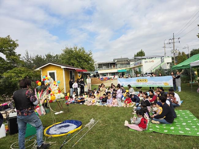 프로그램은 ▲센터의 버블·매직쇼과 부모·자녀 체험활동, 에어바운스 놀이 ▲일죽어린이집의 바람개비 만들기, 체육활동 ▲삼희어린이집의 밧줄놀이, 놀이미술 ▲서운어린이집의 가을낙엽과 밤줍기 체험활동이 선보여 아이들이 가을 하늘 아래 마음껏 웃고 뛰놀 수 있는 다채로운 체험의 장이 됐다.