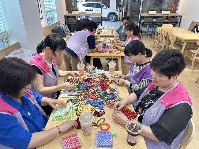 장충단교회 카페에서 모임을 가지는 자원봉사센터 봉사자들.