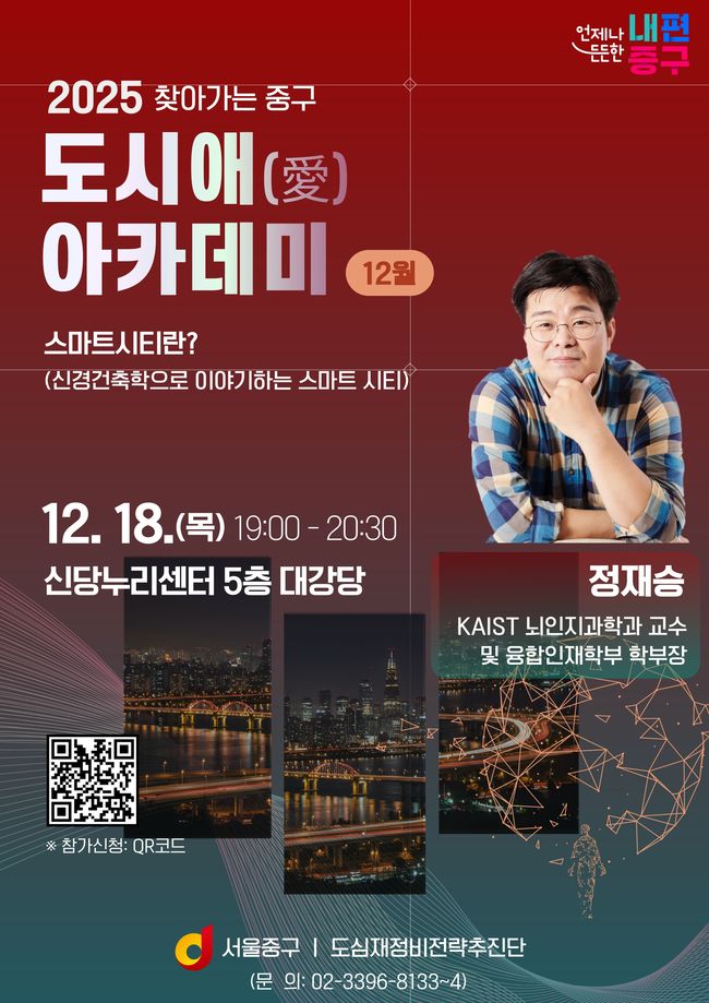 중구가 정재승 교수를 초청해 올해 마지막 도시애 아카데미를 개최한다.