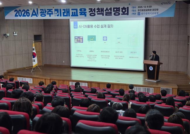 광주시교육청(교육감 이정선)은 지난 9일 광주시교육청창의융합교육원에서 광주 지역 교사 대상 '2026 AI광주미래교육 정책설명회'를 개최했다.