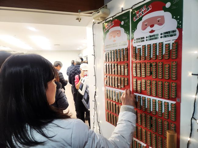 2025년 12월 24일, 송파구 직원이 크리스마스 경품을 뽑는 모습.송파구는 22일 직원 후생복지 강화를 위한 ‘직원 후생복지 종합계획’을 수립했다고 밝혔다. 구는 2022년부터 직원 복지에 지속적으로 투자해 온 결과, 3년 사이 직원 만족도가 26%포인트 상승했으며, 지난해 11월 직원 661명이 참여한 만족도 조사에서는 만족 응답 비율이 94%를 기록했다.