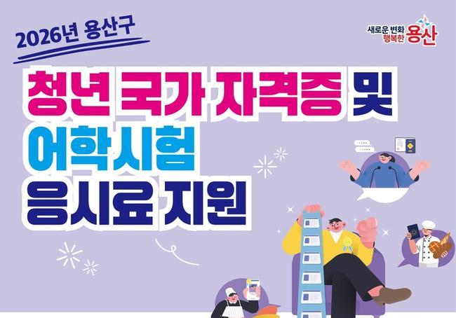 서울 용산구(구청장 박희영)가 올해 '청년 국가자격증 및 어학시험 응시료 지원 사업' 예산과 지원 종목을 대폭 확대해 시행한다. 기존 대비 지원대상을 100여 명 늘리고, 국가공인민간자격 99종을 새롭게 추가했다.