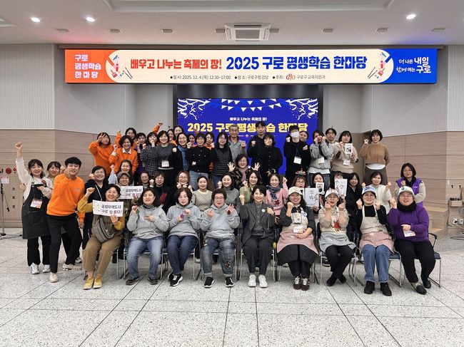 지난해 열린 ‘2025 구로 평생학습 한마당’ 현장 단체사진.서울 구로구(구청장 장인홍)는 교육부 국립특수교육원이 주관한 공모사업에서 ‘장애인 평생학습도시’로 2026년 신규 지정됐다고 4일 밝혔다. 이번 선정은 구로구 최초 사례로, 구는 국비 3,600만 원을 확보해 장애인 평생학습 정책 추진에 활용할 계획이다.