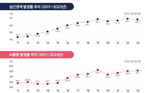 뇌졸중·심근경색 발생률 추이(2011-2023)