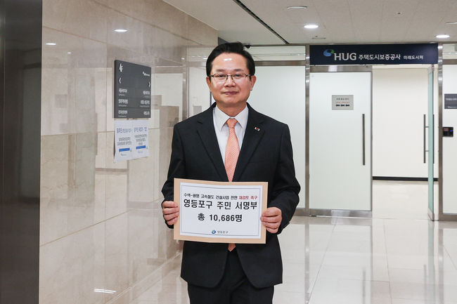 주민 1만여 명의 탄원서를 국토교통부에 전달하는 최호권 영등포구청장.최호권 영등포구청장은 3월 20일 여의도 소재 주택도시보증공사 서울서부지사에서 국토교통부 제2차관을 만나 주민 1만686명의 탄원서를 전달했다고 23일 밝혔다. 탄원서는 지난 2월 11일부터 3월 6일까지 약 한 달간 진행된 서명운동을 통해 마련됐다. 노선 영향권에 포함된 6개 동 주민들이 참여했다.