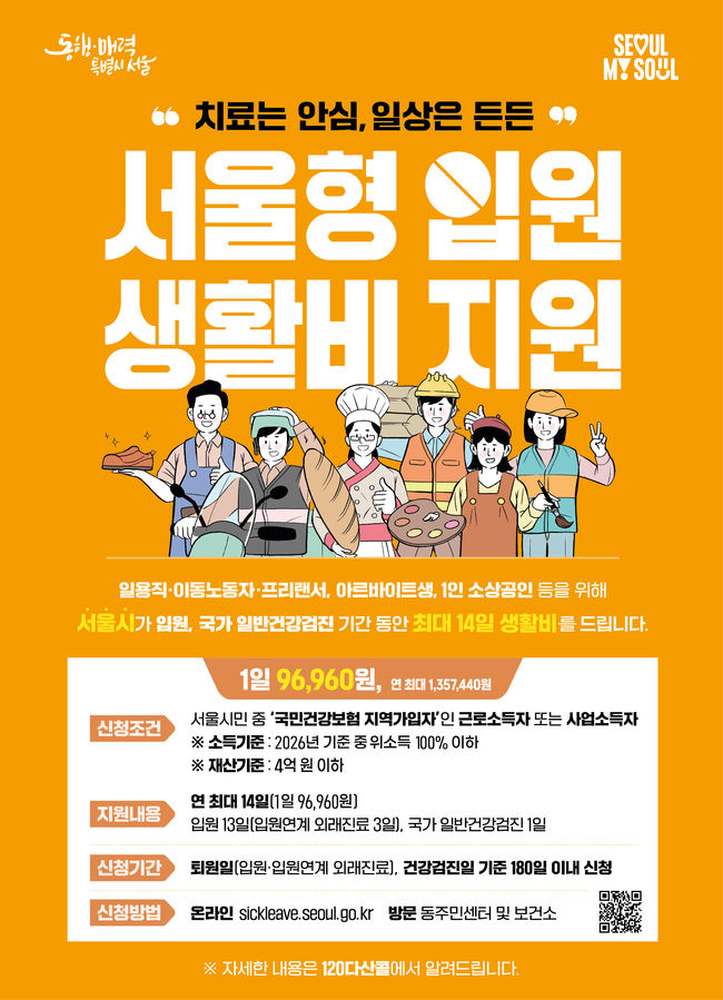 서울형 입원 생활비 지원사업 홍보 포스터.