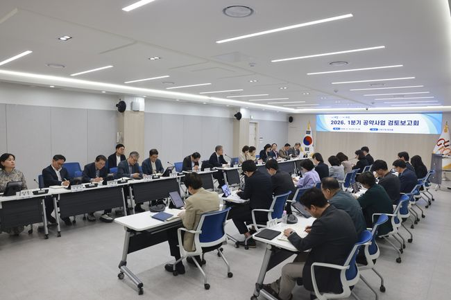 구로구는 15일 창의홀에서 ‘2026년 1분기 공약사업 검토보고회’를 열고 부서별 공약사업 추진현황과 향후 계획을 점검했다.구로구(구청장 장인홍)는 지난 15일 창의홀에서 '2026년 1분기 공약사업 검토보고회'를 개최하고 정상 추진 중인 공약사업 25건의 진행 상황을 살폈다. 보고회에는 17개 부서가 참여해 추진계획과 문제점, 향후 대책을 부서별로 보고했다.