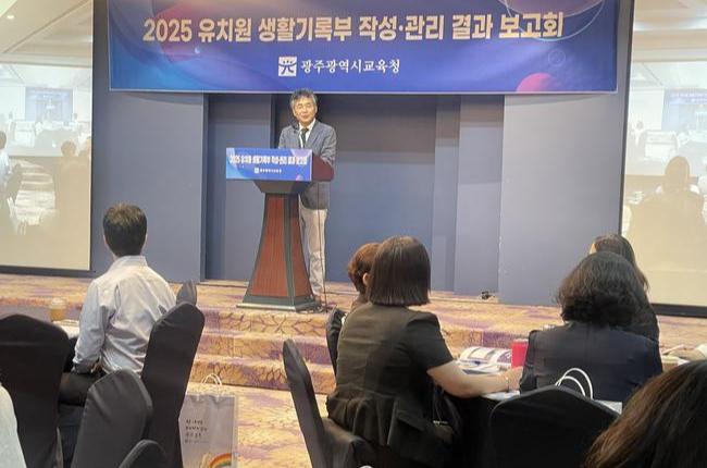 광주시교육청(교육감 이정선)은 15일 충북 오송 H호텔 세종시티에서 교육부 및 17개 시·도교육청, KERIS 관계자 등 70여 명이 참석한 가운데 '2025 유치원생활기록부 작성·관리 지원 결과보고회 및 대표강사 연수'를 개최했다.