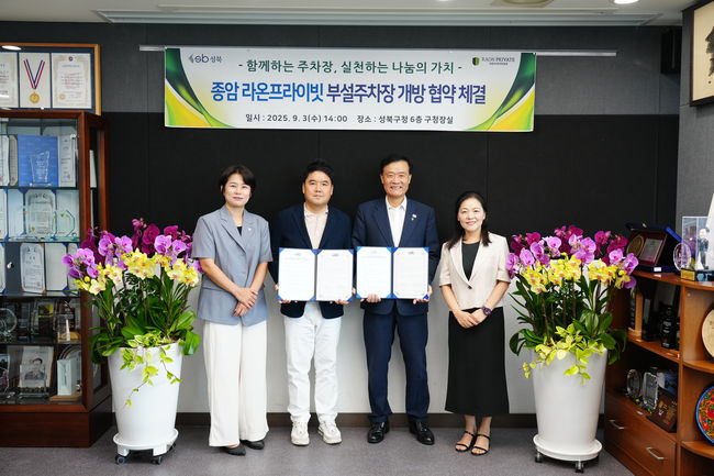 성북구(구청장 이승로)는 지난 3일 종암 라온프라이빗(대표이사 배재민)과 ‘부설주차장 개방 협약’을 체결했다.