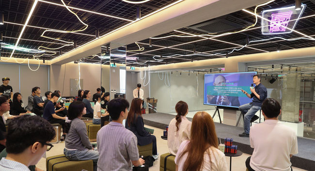 장병규 크래프톤 이사회 의장이 18일 서울 성동구 PUBG성수에서 청년 20명과 함께 한국경제인협회(한경협)의 청년 소통 프로그램 ‘갓생한끼’ 네 번째 자리에 나서 도전과 혁신의 메시지를 전했다.