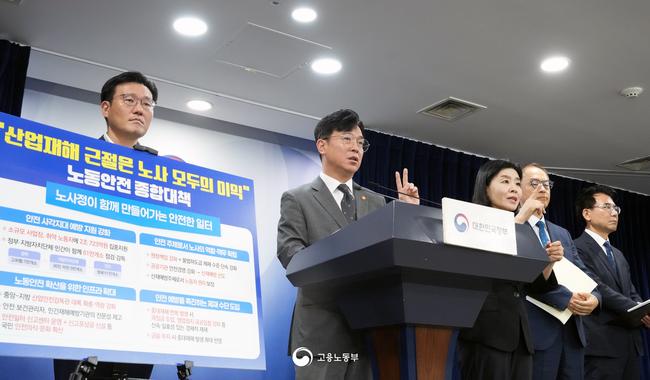 김영훈 고용노동부 장관이 9월 15일 사고 없는 일터, 안전 대한민국을 위한 '노동안전 종합대책'을 발표하고 있다.