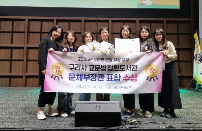 구리시(시장 백경현) 교문 방정환 도서관이 지난 10월 22일 수원컨벤션센터에서 열린 제62회 전국도서관 대회에서 '2025년 도서관 운영 유공 우수도서관'으로 선정돼 문화체육관광부 장관상을 받는 영예를 안았다.