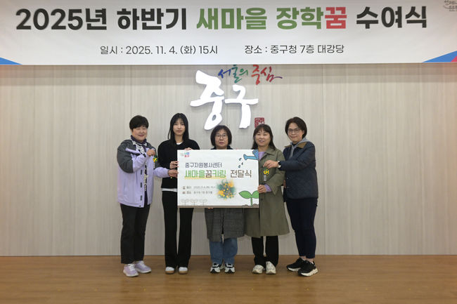 2025년 하반기 새마을 장학꿈 수여식.서울 중구(구청장 김길성)는 중구새마을지도자협의회(지회장 김명곤)가 중구청 중구홀에서 ‘장학꿈 수여식’을 개최하고 새마을지도자 자녀들에게 장학금을 전달했다고 7일 밝혔다.