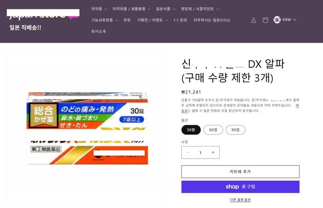 의약품 불법판매·알선 광고 적발사례 - 일반쇼핑몰 (감기약)