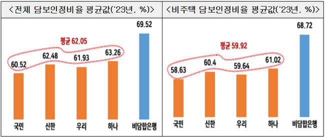 그 결과 4대 은행의 담보인정비율은 장기간 유사한 수준으로 유지됐다. 공정위는 이로 인해 약 60%의 시장점유율을 가진 대형 은행 간 경쟁이 회피됐고, 차주들의 거래은행 선택권이 제한됐다고 판단했다. 2023년 기준 4대 은행의 평균 담보인정비율은 비담합은행 대비 7.5%포인트 낮았으며, 공장·토지 등 비주택 부동산에서는 격차가 8.8%포인트로 더 컸다.
