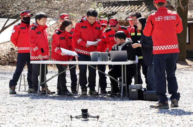 지난해 3월 산불취약지역 점검 AI 기반 산불감시플랫폼과 연계한 드론 점검.서울 노원구(구청장 오승록)는 산림과 인접한 지역 특성에 따른 산불 위험에 대응하기 위해 인공지능(AI) 기반 열화상 드론과 지능형 통합 감시 플랫폼을 활용한 산불방지 대책을 추진하고 있다고 4일 밝혔다.