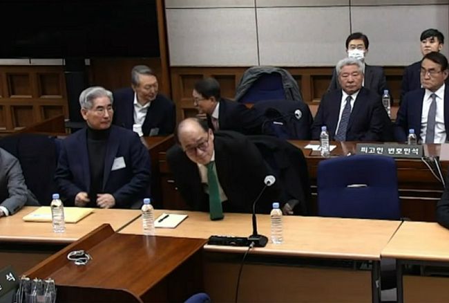 윤석열 전 대통령이 19일 오후 서울 서초구 서울중앙지방법원에서 열린 12·3 비상계엄 관련 내란 우두머리 혐의 사건 1심 선고공판에 출석해 변호인과 대화를 나누고 있다.