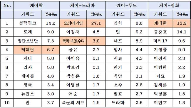 분야별로는 ‘케이-푸드’의 세계적 확산이 눈에 띄었다. ‘김치’, ‘소주’, ‘라면’, ‘비빔밥’ 등 전통·대중 한식과 함께 ‘셰프’, ‘오징어 게임’이 연관 핵심어로 부상했다. 온라인동영상서비스(OTT)를 통해 방영된 요리 예능과 드라마 속 한식 노출이 재조명 효과를 낳은 것으로 분석됐다.