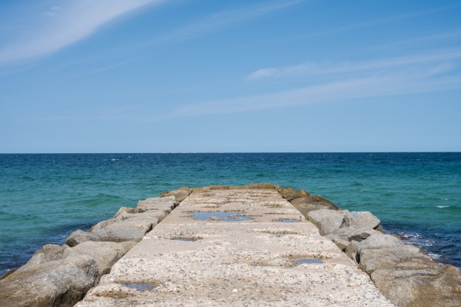 주문진 방사제는 드라마 '도깨비' 속 감성적인 해변 풍경으로 국내외 관광객의 발길이 이어지는 대표 명소로, 강릉 바다의 서정적인 이미지를 상징한다.