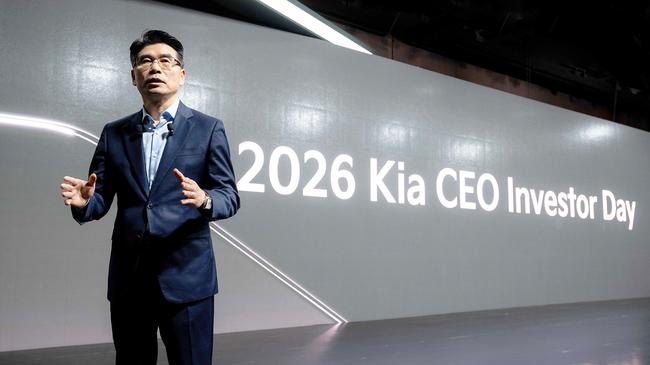 기아 송호성 사장이 ‘2026 CEO 인베스터 데이(CEO Investor Day)’에서 기아의 중장기 사업 전략 등에 대해 설명하고 있다.