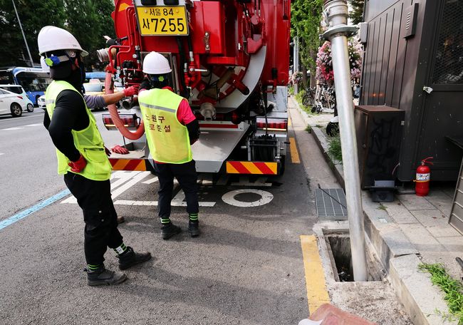빗물받이 준설작업 현장.